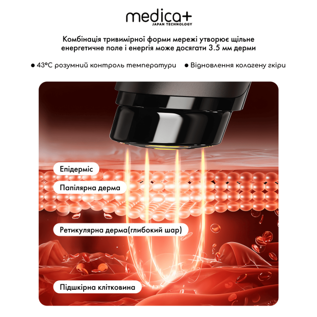 •Глибина впливу: енергія досягає дерми на глибину до 3,5 мм.