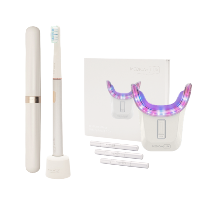 MEDICA+LUX WHITEPEARL 10X - це інноваційна відбілювальна капа для зубів з 32 світлодіодними лампами, що забезпечує швидке та ефективне відбілювання. Протягом 16 хвилин використання кілька разів на тиждень ви відчуєте впевненість у білій посмішці. Вона пропонує швидкі та помітні результати вже після першого застосування. Спеціальна формула дозволяє відбілити зуби навіть людям з підвищеною чутливістю. Вбудований таймер і три режими відбілювання роблять процес зручним і безпечним. Комплект включає в себе відбілювальну ручку, капу для рота та потужний відбілювальний гель. Водонепроникна конструкція забезпечує легкість у догляді та багаторазове комфортне використання.