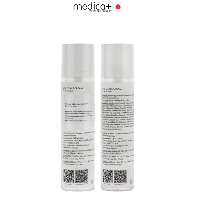 VITA C FACE CREAM поєднує антиоксидантну силу вітаміну С з глибоким зволоженням NMF-комплексу. Крем вирівнює тон шкіри, надає їй свіжості та еластичності, захищає від зовнішніх факторів і забезпечує відчуття комфорту протягом усього дня.