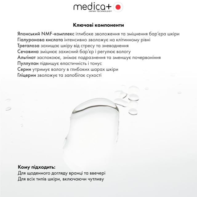 Завдяки комбінації 7 зволожуючих компонентів та японського NMF-комплексу (амінокислоти та природні зволожувальні фактори):