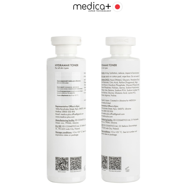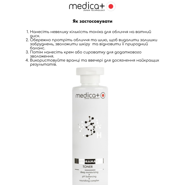 MEDICA+ HYDRAMAX TONER — це зволожуючий та балансуючий тонік нового покоління, створений для дбайливого, але ефективного догляду. Його ніжна формула без спирту делікатно очищає, відновлює природний pH-баланс, дарує глибоке зволоження та готує шкіру до наступних етапів догляду.